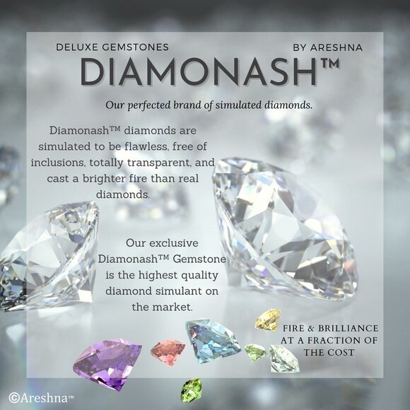 Stone: 35ct Made with Diamonash™ diamond simulants. Each Diamond is polished to resemble the Brilliance and Fire of a Mined fine diamond.