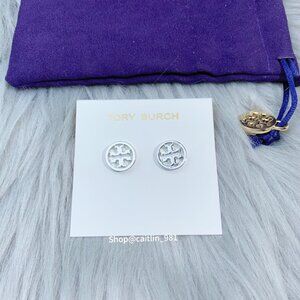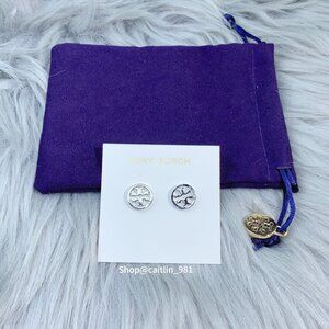 Tory Burch Women's Logo Circle-Stud Earrings - Tory Silver