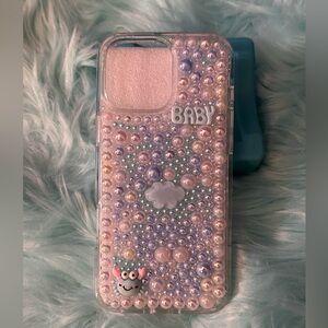 Personalized case for iPhone 16 pro-max with blue stone.