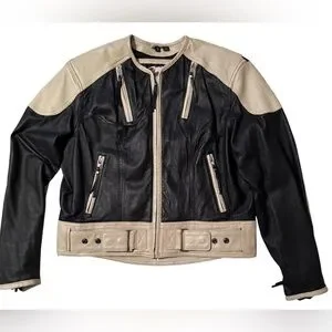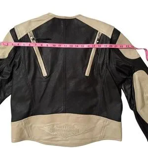 Harley Davidson Women's Cream White & Black Leather Jacket 97002-14W Size Large