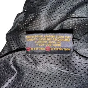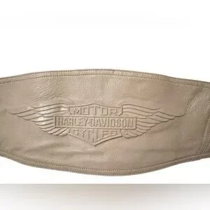This excellent condition but used Harley Davidson women’s leather jacket is a classic. Lines on this coat accent women’s features all while being the tough and durable quality of Harley Davidson products. This jacket is a size large.