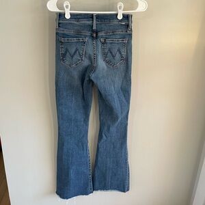 These Mother jeans come in a mid-rise, flared hem, and a medium indigo wash.