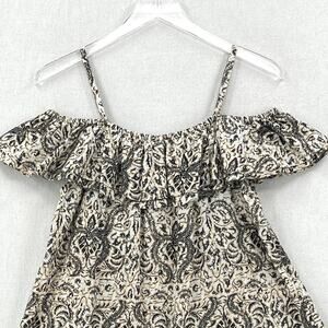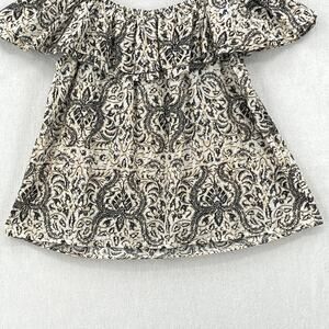 FIGUE Tamara Top Womens Large Cream Black Printed Off the Shoulder Blouse Cotton