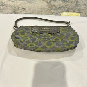 Coach adorable small wristlet/purse with coach insignia on the front and inside green and gray