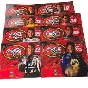 Vintage 80s Coca Cola Nascar Racing Family set of 8 plastic placemats of 8 different Nascar drivers as follows: