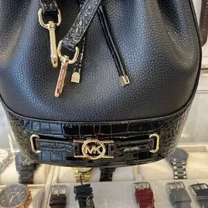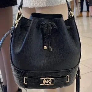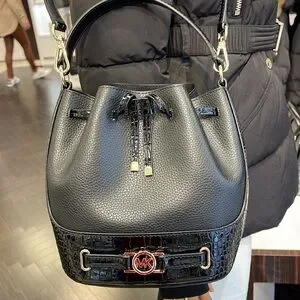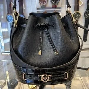 The Reed infuses glamor into an otherwise austere bucket bag design. Crafted from smooth leather, it features a drawstring closure that opens to a spacious interior. A belted feature with our gold-tone “MK” hardware and coordinating accents finish it with a gilded touch. Carry it by the top handle or wear it crossbody with the removable strap.