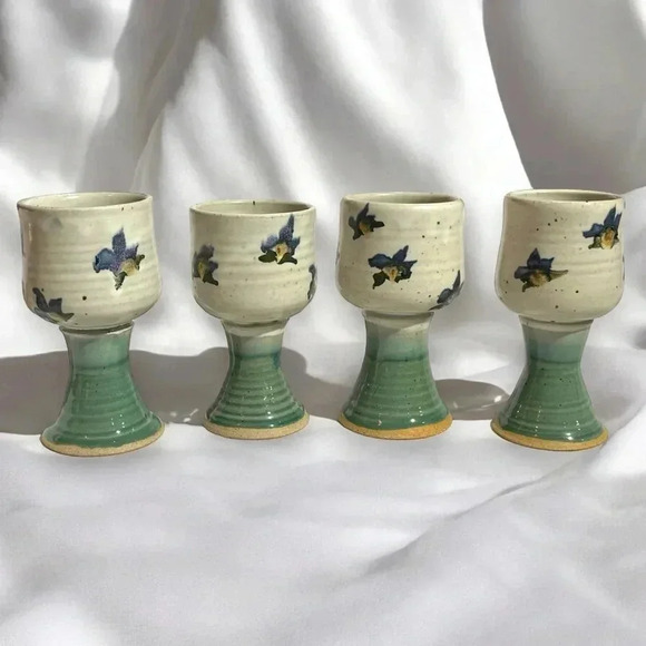 Vintage Handmade Orchid Stoneware Wine Goblet Set of 4