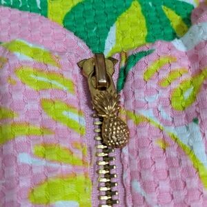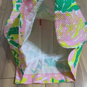 NWT! Lilly Pulitzer Target Flamingo Fan Dance Shift Dress, women's Size 6. Beautiful! This dress has the prettiest pink and green flamingo pattern with white embroidery down the front. The back zips up with a cute pineapple pull. You can wear this on the casual, or dress it up for a special event. Measurements are shown in the photos, and please do view these as the sizing runs small. It comes from a smoke and pet free home. No defects found upon final inspection. Message me if you have any questions. Enjoy!