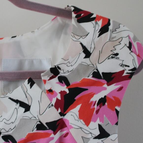 L.K. Bennett Dena Sheath Dress White Pastel Peach Pink Floral Print US 8
