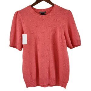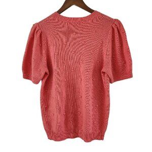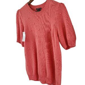 Chelsea & Theodore Womens Size L Coral Peach Pommed Sweater Puffed Sleeve New