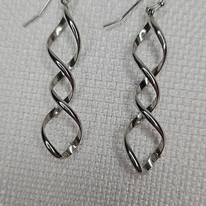Gorgeous swirly drop earrings by Lia Sophia in a shiny silver. Feather weight.