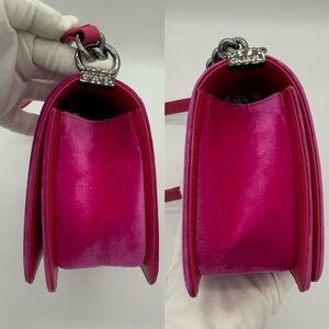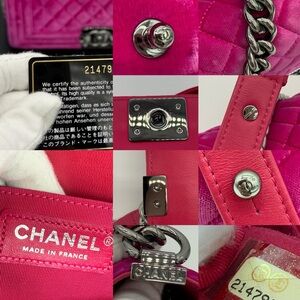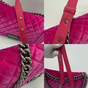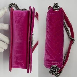 Authentic Chanel Hot pink velvet le boy medium flap
