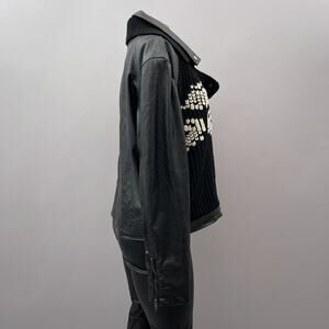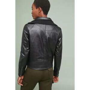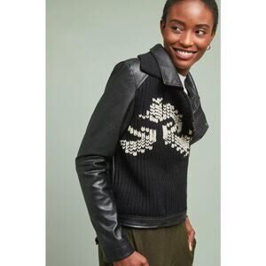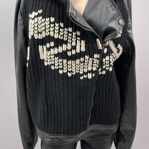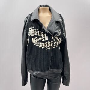 ett:twa by Anthropologie Sweater Trimmed Faux Leather Jacket Black Women's Large