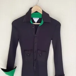 Bottega Veneta Black/Green Ribbed Silk Blend Romper.