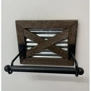 Timeless Farmhouse Bathroom Rustic Toilet Paper Holder Elevate your farmhouse bathroom décor! Farmhouse style, crafted with solid, weathered wood and galvanized metal adds nature-infused warmth and life to your rustic bathroom walls.