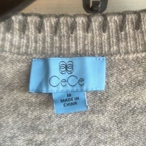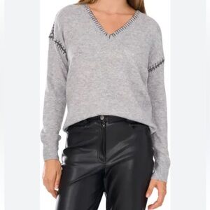 CeCe NWT V-Neck Gray /Blk Whipstitch Vneck Long Sleeve Pullover Sweater Medium