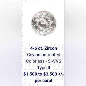 This gorgeous custom cut White Zircon is naturally mined and untreated, weighs 5.93 carats, and is VS clarity with gorgeous brilliance.