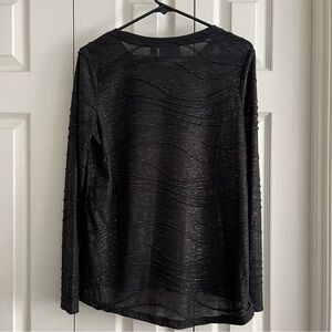 Elegant black & metallic gold long sleeve top with a stylish textured design. Perfect for any occasion, from holiday festivities to a casual night out on the town