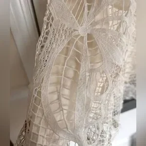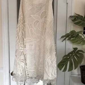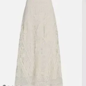FARM Rio White Lace Guipure Midi Skirt