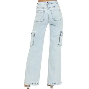 The Risen high rise cargo jeans feature a wide leg and are made of super soft and stretchy denim, making them both trendy and comfortable.