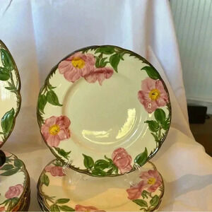 Beautiful 1940s desert rose flower handpainted Franciscan California vintage plate set. 6, 9 1/5”inch dinner plates and 4, 8”in luncheon plates.