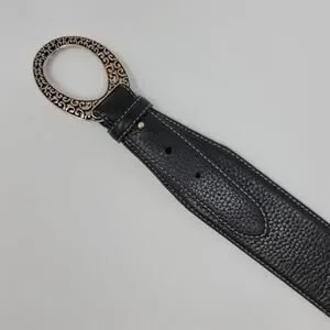 Brighton adjustable wide waist belt, size large. Ornate buckle. Silver-tone buckle and hook closure.