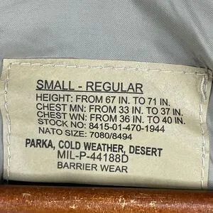 Desert Camo ECWCS Cold Weather Parka Adult Small Regular Nylon Hooded Military *