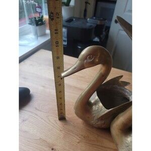 Vintage Swan Long Neck Bird Brass Sculpture Statue Figurine Gold Swan Set Of Two