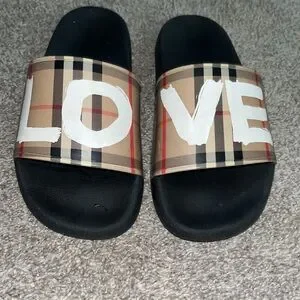 Gently used His & Hers Burberry slides used like new