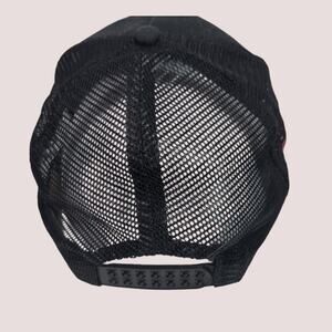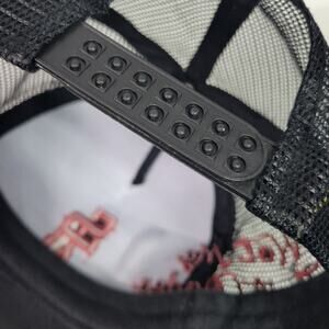 Stevenson Ranch classic trucker hat FEATURES 'not my first rodeo' in script embroidery on the side. Canvas front panel with embroidered SR logo. Mesh back panel. Slightly curved brim. Adjustable plastic snap closure in back.