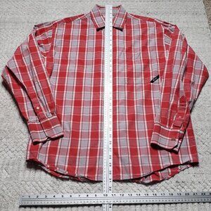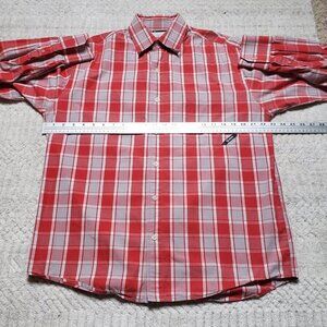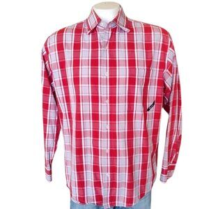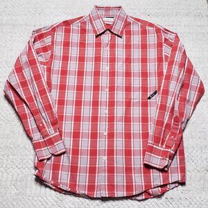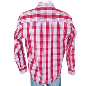 Men's Red and White Long Sleeve Button-Down Shirt Size Large