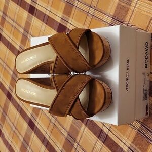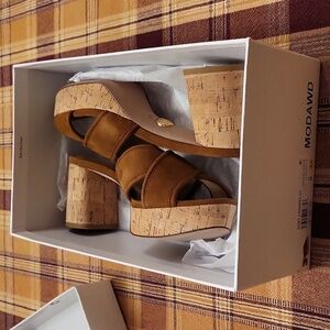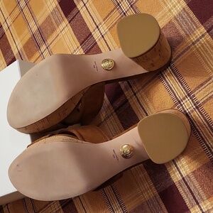 Versatile but striking. It's set on cork platform and 2.75" block heel gives just the right amount of lift—and the ultimate in walkability. The crisscross suede straps elevate the look, giving the shoe a cool textural mix. Wear them with any outfit that needs a boost.