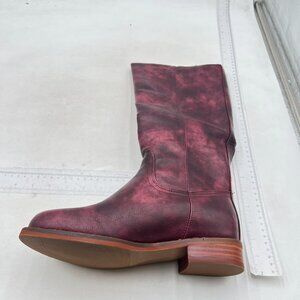 FOWT Women Platform Round Toe Calf High Boots Chunky Block Low Heel Purple Boots
