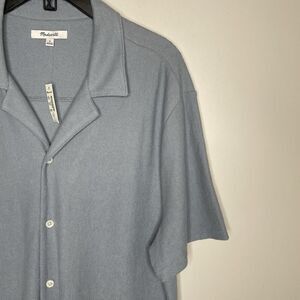 MADEWELL Shirt Men Medium East Short Sleeve Jacquard NEW Blue Button Up NO846