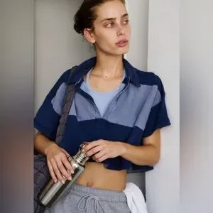 Features: Classic collar, cropped design, dropped shoulders, FP