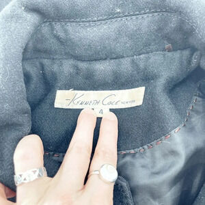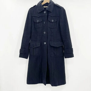 Kenneth Cole Trench Coat Women's Size 4 Black 4 Utility Pockets Mid Length Wool