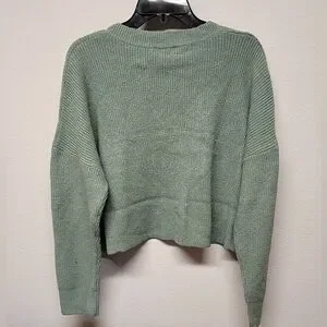 Good Luck Gem ribbing crop v-neck sweater Granite Green.