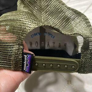 Built to endure 1973 Patagonia cap. Green and brown hat in nearly new condition. There is a little light spot on the front.
