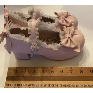 Lolita Womens Mary Janes Pump Shoes Bowknot T-Strap Block Heel Lace - Size 34