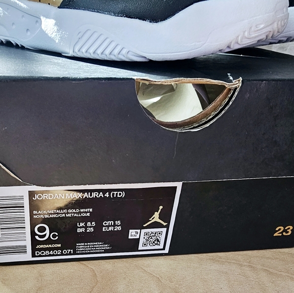 *EUC PAIR OF BLACK & GOLD STYLISH JORDAN MAX AURA 4 (TD) TO ADD TO YOUR TODDLERS WORDROBE