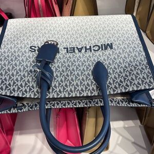 Michael Kors Mirella Medium Ombré Logo EW Tote Bag Navy NWT