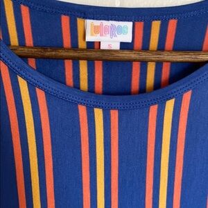 New with tags LuLaRoe Julia dress. Blue, mustard yellow and orange colors. See photos for details.