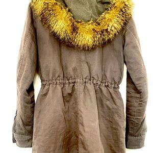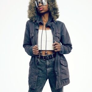 LOFT Charcoal Gray Zip Removable Hood W/Faux Fur XS
