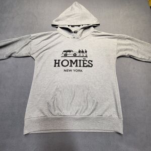 Homies New York Hoodie Womens L Gray Pullover Sweatshirt Long Sleeve Lightweight