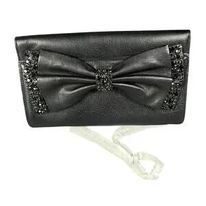 Kate Spade New York Manor Place Shea Black Embellished Leather Clutch Bow NWOT