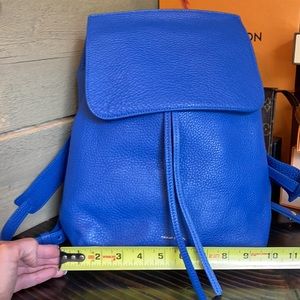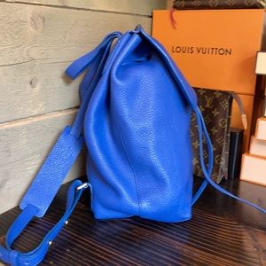 Mansur Gavriel pebbled leather backpack in royal blue. This beautiful and spacious bag in new and unused and is crafted of quality pebbled leather in a stunning electric royal blue with gorgeous gold toned hardware and comfort shoulder straps. Please see attached pics to verify condition and for details!