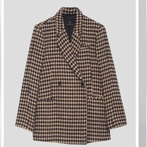 This is an oversized fit. Double breasted style, houndstooth print in camel and black. Very coveted style. Iโm 5โ10โ and an xxs, this fits me perfectly oversized to wear a sweater underneath. Selling on other sites for over $500.