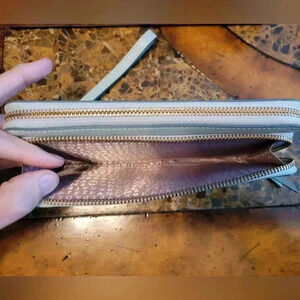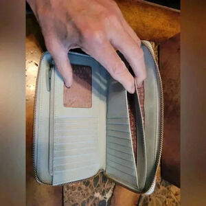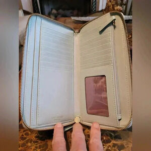 Gorgeous baby blue Kate Spade organizer with two zipper compartments with lots of room for everything you need. Can be used as a clutch. It's larger than a wallet. Please see all photos for more details and description of the organizer. Thanks