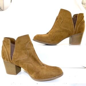 INDIGO RD CHESTNUT FAUX SUEDE WESTERN COWGIRL SLIP ON ANKLE BOOT SZ 8.5M