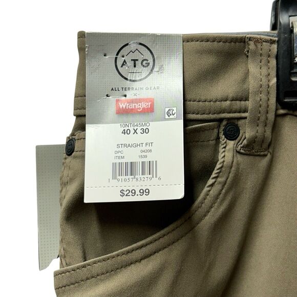NEW Wrangler ATG Pants Men 40x30 Brown Straight Fit Articulated Knees Zip Pocket